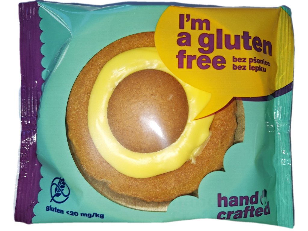 Zloženie : ryžová múka, citrónová náplň 25% (cukor, nehydrogenovaný olej: slnečnicový, sójový, repkový, palmový ,sušené odstredené mlieko 10%, sušená srvátka ,laktóza, prírodné citrónové farbivo, emulgátor :sójový lecitín, prírodné farbivá : karoteny),cukor, úplne hydrogenovaný rastlinný olej kokosový, citrónový olej 9 %, citrónový sirup, jablková dreň, tmavá poleva (cukor, úplne hydrogénovaný rastlinný tuk kokosový, kakaový prášok so zníženým obsahom tuku (16%), emulgátor: slnečnicový lecitín, aróma: vanilín), vajcia,objemové činidlo: jedlá sóda