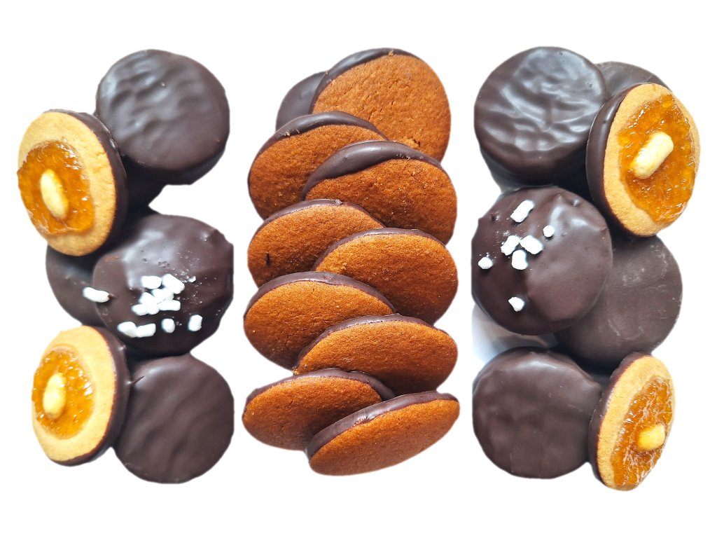 Zloženie:ryžová múka,úplne hydrogenovaný rastlinný olej kokosový, cukor, tmavá poleva 35 % z hmotnosti ( cukor, úplne hydrogenovaný rastlinný tuk kokosový, kakaový prášok so zníženým obsahom tuku (16%), emulgátor: slnečnicový lecitín, aróma: vanilín ), marhuľový džem( jablčný pretlak,cukor, glukózovo-fruktózový sirup, marhuľový pretlak (8%), višňový pretlak,regulátor kyslosti: kyselina citrónová, želírujúca látka: pektín), slivkový lekvár ( slivkový pretlak (63%), jablčný pretlak (21%), cukor,glukózovo-fruktózový sirup, karamelizovaný cukor, zahusťovadlo: xantán, regulátor kyslosti: kyselina citrónová ), čerstvé vajcia, kokos, karob, škorica, arašida, citrónový olej,citrónová pasta, objemové činidlo:jedlá sóda, emulgátor: slnečnicový lecitín