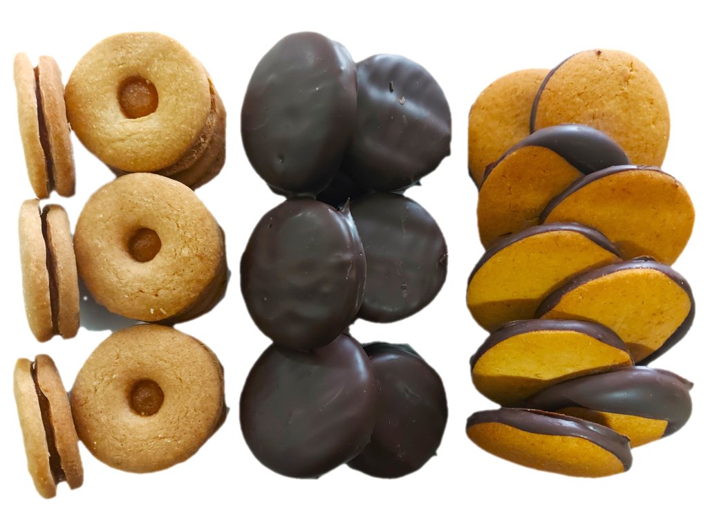 Zloženie: ryžová múka, úplne hydrogénovaný rastlinný olej kokosový, cukor, kokos, marhuľový džem ( jablčný pretlak, cukor, glukózovo- fruktózový sirup,marhuľový pretlak (8%), višňový pretlak, regulátor kyslosti: kyselina citrónová, želírujúca látka:pektín), tmavá poleva ( cukor, úplne hydrogénovaný rastlinný tuk kokosový, kakaový prášok so zníženým obsahom tuku (16%), emulgátor: slnečnicový lecitín, aróma: vanilín), vajcia, citrónový olej, citrónový sirup, jablčná dreň, karob, škorica, stabilizátor: guma guar, objemové činidlo: jedlá sóda, glukóza